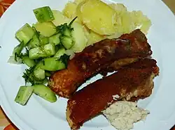 In nördlichen Regionen ist eine sehr beliebte Zubereitung Karpfen blau mit Petersilien- oder Salzkartoffeln und Meerrettichsauce.