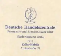 - ↑ Deutsche Handelszentrals Niederlassung Zella-Mehlis: Anordnung im Gesetzblatt der DDR, Teil II, Nr. 24, S. 270, 22. Oktober 1958 (eingesehen am 3. November 2019).