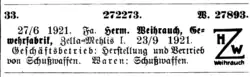 - ↑ Deutscher Reichsanzeiger: Ausgabe 1921, S. 238 online bei digi.bib.uni-mannheim.de, Pos. 33 / Eintrag: 272273 Warenzeichennummer: 27893 (altes HWZ Logo), Scan vom Original eingesehen am 3. November 2019.