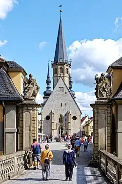 Die im Jahre 1419 erbaute, heute evangelische Kirche St. Georg am historischen Marktplatz bietet mit dem halbkreisförmigen Zugang zum Schloss und den angrenzenden Häusern immer noch das idyllische Bild eines Grafenhofes und eines Residenzstädtchens in Hohenlohe. Die Georgskirche ist mit ihrer Lage am Taubertalradweg als Radwegekirche ausgewiesen.[30]