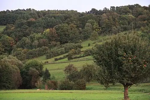 - die Erhaltung besonderer, den Landschaftscharakter prägender topographischer Ausbildungen und Landschaftselemente in ihrer Vielfalt, Eigenart und Schönheit. Hervorzuheben sind insbesondere die naturnahen Fließgewässer, die Klingen und Seitentäler sowie die Steinriegel;
