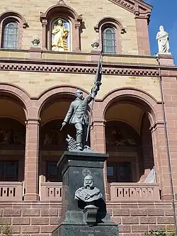 Das ältere Denkmal, errichtet 1890, vor der St.-Laurentius-Kirche