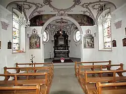 Anstelle von Seitenaltären besitzt die Kapelle Seitenbilder aus dem Jahr 1898. Diese stammen vom Maler Fischer.