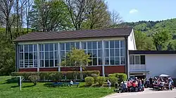 Südlich vom Rathaus führt der Talweg eine Abzweigung zu einer Wendeschleife, um welcher sich ein Spiel- und ein Bolzplatz, die Schule, die Halle Weitenau gruppieren. Die Halle, die auch Sportstätte des Ringervereins ist, gilt als sportlich und kultureller Mittelpunkt des Ortes und seiner Umgebung.