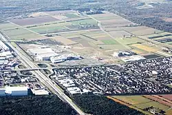 Riedbahn ist der Gemarkungsbereich östlich der Bundesautobahn 5 Frankfurt–Darmstadt. Die Namensgebung beruht auf einer Eisenbahnstrecke von Darmstadt ins Hessische Ried nach Worms, die 1970 stillgelegt wurde.[10] Die ersten Wohnungen wurden entlang der früheren Darmstädter Straße (heute Riedbahnstraße) gebaut. Nach dem Zweiten Weltkrieg entstanden einige Wohnhäuser mit landwirtschaftlichen Erwerbsstellen. Anfang der sechziger Jahre wurde auf dem früheren Exerzierplatz mit der Erschließung des Industrie- und Gewerbegebiets begonnen.