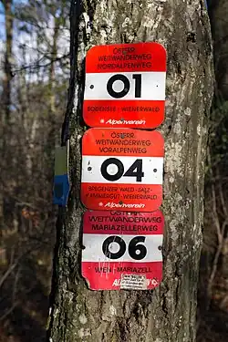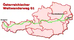 - ↑ Übersicht bekannter Haupt- und Rundwanderwege sowie Pilgerwege in Österreich, Karte der Weitwanderwege Österreichs, beide: ÖAV-Sektion Weitwanderer