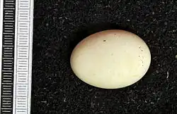 In die Nistkammer wird ein einzelnes weißes, am dickeren Ende leicht rotbraun gepunktetes Ei gelegt. Die Brutdauer beträgt im Durchschnitt 41 Tage. Die Vögel lösen sich beim Bebrüten ab. Mit 63 bis 70 Tagen werden die Jungen flugfähig. Während der Brutzeit kommunizieren die ansonsten stummen Vögel mit ratternden gurrenden Lauten.