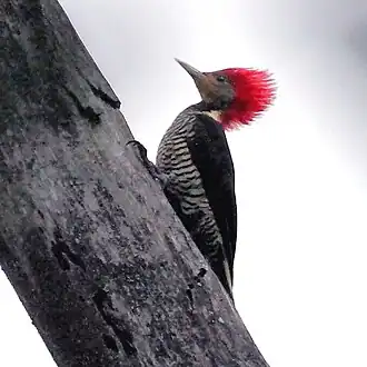 - ↑ Benz, B.W., M.B. Robbins, and K.J. Zimmer. 2015. Phylogenetic relationships of the Helmeted Woodpecker (Dryocopus galeatus): A case of interspecific mimicry? Auk 132:939–950.