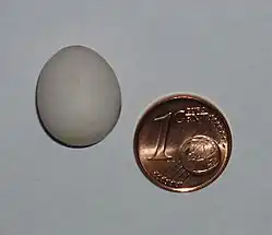 Ein Gelege besteht in der Regel aus vier bis sechs, in Ausnahmefällen aus acht Eiern.[29] Die Eier werden vom Weibchen ab dem ersten Ei bebrütet. Nach rund 18 Tagen schlüpfen die Jungtiere und das Männchen versorgt das Weibchen mit Nahrungsbrei.[29] Der eigentliche Schlupfvorgang dauert 20 Minuten.[30] Wellensittichweibchen helfen den sehr hilflosen Küken beim Schlüpfen. Frisch geschlüpfte Küken wiegen rund 2 g.[30] Nach 30–35 Tagen fliegen die Jungtiere aus.[31]