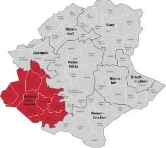 Der Stadtteil besteht aus den neun ehemaligen Mitgliedsgemeinden der Samtgemeinde Wellingholzhausen; darunter die acht alten Bauerschaften Handarpe, Himmern, Kerßenbrock, Nüven, Oberschlochtern, Peingdorf, Uhlenberg und Vessendorf sowie das Kirchdorf Wellingholzhausen.