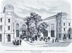 Das riesige Gebäude des Industriepalasts wurde in Zusammenarbeit des Architekten Jean-Marie Victor Viel und der Ingenieure Alexis Barrault und Gustave Bridel geschaffen. In der Mitte der 208 m langen Hauptfassade befand sich ein monumentales Portal mit Skulpturen von Élias Robert und Georges Diebolt (1816–1861). Der Industriepalast wurde 1897 abgerissen und an seiner Stelle das Grand Palais errichtet.