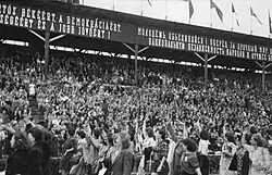 - 1949 in Budapest – 10.400 Teilnehmer aus 82 Ländern, darunter eine Delegation der FDJ von 750 Teilnehmern