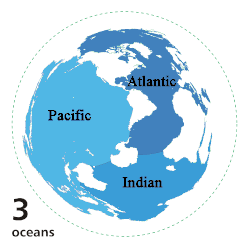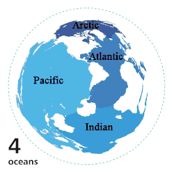 Insgesamt sind 71 Prozent der Erdoberfläche von Meeren (den Ozeanen und deren Nebenmeeren) bedeckt. Sie konzentrieren sich auf der Wasserhemisphäre, deren Zentrum im riesigen Pazifik nahe Neuseeland liegt. Auf der gegenüberliegenden Landhemisphäre befinden sich nur der Atlantik, der Arktische Ozean und Teile des Südlichen Ozeans sowie des Indischen Ozeans.