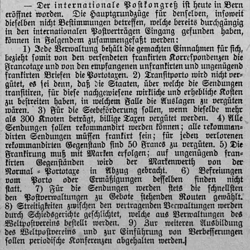- ↑ Treaty Concerning the Formation of a General Postal Union: Signed at Berne, October 9, 1874. U.S. Government Printing Office, 1875, S. 37 (google.de).