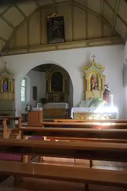 Das Votivbild einer Mater dolorosa aus dem Jahr 1691 befindet sich am Chorbogen. Die Tafelreihe mit Szenen aus dem Leben Mariens stammt aus dem 17. Jahrhundert. Das Antependium des hl. Wendelin aus dem 17. Jahrhundert wird bei Feldmessen als Altar verwendet.