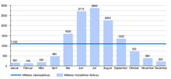 - ↑ Martin Pfaundler, Rolf Weingartner, Robert Diezig: „Versteckt hinter den Mittelwerten“ – die Variabilität des Abflussregimes. In: Hydrologie und Wasserbewirtschaftung (HyWa). Jg. 50, Heft 3, 2006, S. 116–123, hier Tabelle auf S. 119 (Download [PDF; 3,2 MB; abgerufen am 1. November 2024]). Abrufbar unter Gesamtes HyWa Heft 3, 2006..