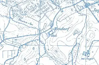 Im preußischen Urmesstischblatt (PUM) von 1835 zeigt sich Wendorf mit einem Gutshof als Vierseithof mit Park, im Ort sind nur drei Katen erkennbar.