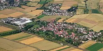 ![]() Luftbild Wenkbachs mit dem alten Ortskern im Vorder- und der Siedlung im Hintergrund