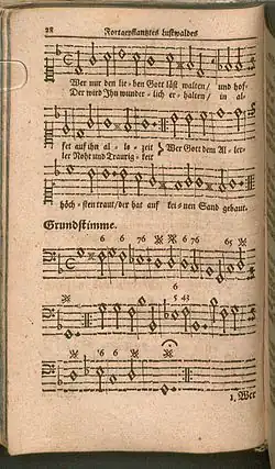 - ↑ In Johann Sebastian Bachs Kantate von 1724 „Den wird er wunderlich erhalten“, in späteren Fassungen „Den wird er wunderbar erhalten“.