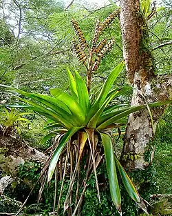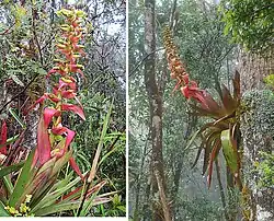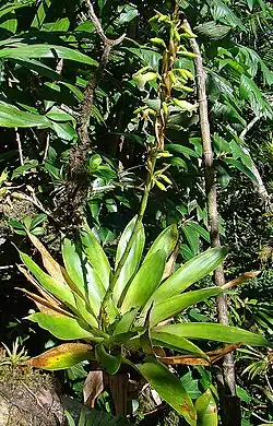 Werauhia cowellii(Mez & N.L.Britton) J.R.Grant Sie gedeiht epiphytisch in Nebelwäldern auf den Kleinen Antillen und in Venezuela.[3]