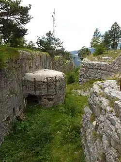 In den Planungen war jedoch ein grober Fehler enthalten, da der Frontgraben in einem zu flachen Winkel zum Batterieblock angelegt worden war. Dadurch wurde der Kontreeskarpenkoffer[1] nicht gegen Querfeuer von den östlich gelegenen Batterien bei Spelonca della Neve gedeckt und erhielt mehrere schwere Treffer aus dieser Richtung.