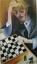56-106 | Magisches Theater | 1956 | Öl | Nessel | 60 | 90 | HB 6/56 | Bunte Stube 1987, Wuhlgarten 2003, Wesel 2010, Marzahn 2010, Ahrenshoop 2019 | Privatbesitz. | 56-203, | ||