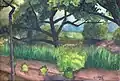 55-110 | Im Garten | 1955 | Öl | Nessel | 60 | 90 | HB 10/55 | Privatbesitz | Nach der Aquarellskizze 55-414 | |||