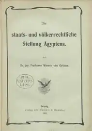 - Die staats- und völkerrechtliche Stellung Ägyptens. Duncker & Humblot, Leipzig 1903.