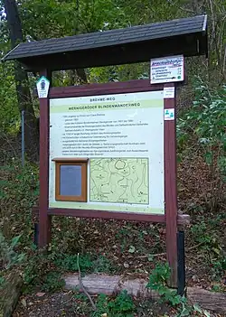 Informationstafel mit Tafel in Brailleschrift am Beginn des Wernigeröder Blindenwanderweges (2018)