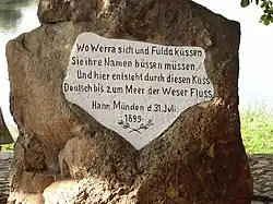 Am Zusammenfluss von Werra und Fulda, durch den in Hann. Münden die Weser entsteht, steht seit 1899 der (alte) Weserstein und seit 2000 der (neue) Weserstein. Hoch oben über der Stadt befindet sich jenseits der Werra über der B 80 auf dem Questenberg die Weserliedanlage.