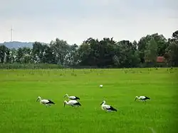 - die großflächigen, extensiv genutzten Grünlandflächen mit ihren feuchten Bereichen als Brut- und Nahrungshabitat für Wiesenbrüterarten wie Bekassine (Gallinago gallinago), Wachtelkönig (Crex crex), Kiebitz (Vanellus vanellus), Braunkehlchen (Saxicola rubetra), Wiesenpieper (Anthus pratensis), Weißstorch (Ciconia ciconia), Wachtel (Coturnix coturnix) und Wendehals (Jynx torquilla),