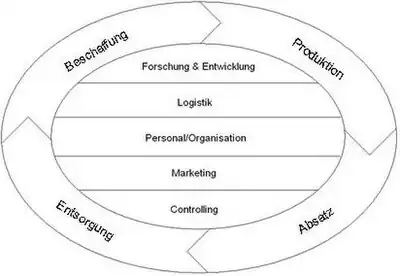 Der Wertschöpfungskreis wird gebildet aus den primären Funktionsbereichen: