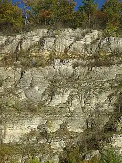 Im Bereich des Prallhanges selbst finden sich A-Cv-C-Profile auf kalkhaltigem Grundgestein, etwa Rendzinen.[7]