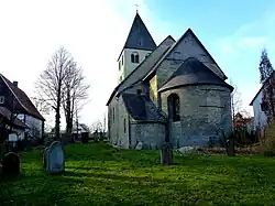 Die evangelische Pfarrkirche, benannt nach dem Kirchenpatron St. Urban, ist die zweitälteste Hallenkirche der Soester Börde. Die Kirche im romanischen Stil wurde vermutlich in der Mitte des 13. Jahrhunderts errichtet. Bereits in der zweiten Hälfte des 12. Jahrhunderts sind vermutlich der Chor und schon 1170 der kräftige, quadratische Westturm mit Rundbogenblenden (Höhe 34 m) entstanden. Das Langhaus ist zweijochig mit kuppelförmigen Gratgewölben und einhüftigen Tonnengewölben in den Seitenschiffen. Gewölbe- und Chormalereien, vergleichbar mit denen der Kirche Maria zur Höhe in Soest, sind in gutem Zustand erhalten. Die Kirche hat eine wertvolle Inneneinrichtung und romanische Wandgemälde.