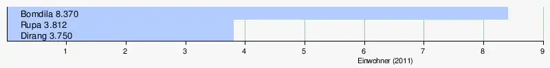 Wie überall in Indien wächst die Einwohnerzahl im Distrikt West Kameng seit Jahrzehnten stark an. Die Zunahme betrug in den Jahren 2001–2011 rund 13 Prozent (12,53 %). In diesen zehn Jahren nahm die Bevölkerung um mehr als 9300 Menschen zu[6]. Die genauen Zahlen verdeutlicht folgende Tabelle: