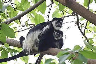 - ↑ Tania L.Saj & Pascale Sicotte: Colobus guereza Guereza Colobus S. 103–119 in Jonathan Kingdon, David Happold, Michael Hoffmann, Thomas Butynski, Meredith Happold und Jan Kalina (Hrsg.): Mammals of Africa Volume II: Primates, Bloomsbury, London, 2013, ISBN 978-1-4081-2252-5