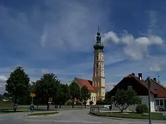 - Pfarrkirche Mariä Opferung. Das Bauwerk mit frühromanischen Ursprüngen stammt aus dem späten 15. Jahrhundert und wurde im 18. Jahrhundert barock umgestaltet. Der stattliche Turm entstand um 1483; er wurde 1741 auf 60 Meter erhöht und erhielt seine charakteristische Zwiebelhaube. Am Rokoko-Hochaltar von 1787 befinden sich zwei Figuren von Christian Jorhan dem Älteren. Die Kanzel aus der Werkstatt des Mathias Obermayr um 1755 enthält Reliefs zur Johannesgeschichte.