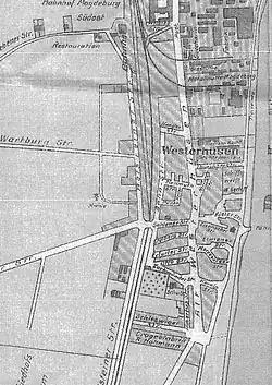 - ↑ Ein Bebauungsplan für das Gelände südlich von Westerhüsen. In: Volksstimme. 19. November 1920.