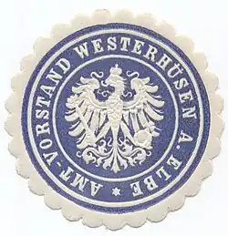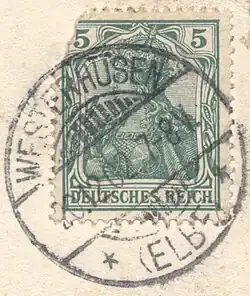 - ↑ Dieter Sejak, Homepage zu Poststempeln ( vom 20. Juni 2013 im Internet Archive), letzter nachgewiesener Stempelabschlag Westerhüsen danach in einem Posteinlieferungsbuch vom 10. August 1913.