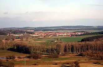 ![]() Blick auf Westerhausen vom Hamburger Wappen an der Teufelsmauer