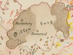 - ↑ a b c d e f g h i j k l m n o p Gustav Angelbis: Geologische Spezialkarte von Preussen und den Thüringischen Staaten und Nachfolgewerke; [Neue Nr. 5314]; Rennerod; Gradabteilung 67, Blatt 23. Kraatz, Berlin 1890; doi:10.23689/fidgeo-3791. e-docs.geo-leo.de