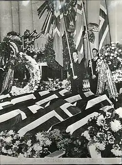 Am 8. September 1944 geriet das Schiff im Kattegat in schwere See. Um 11:15 Uhr gab es im Vorschiff eine schwere Explosion, eine Minute später achtern eine zweite. Die Westfalen war auf zwei Minen gelaufen. Sie brach auseinander und sank schnell in der stürmischen See. Die Gefangenen wurden aus dem Schiffsinneren befreit, als das Schiff zu sinken begann. An Deck herrschte Panik und jeder versuchte, einen Platz in einem Rettungsboot zu ergattern. Unter den Überlebenden befanden sich später nur fünf norwegische Gefangene. Insgesamt überlebten nur 78 Personen. 35 der umgekommenen Norweger wurden gefunden und beim Göteborger Dom beigesetzt, unter ihnen die Widerstandskämpfer Petter Moen,[2] Reidar Olaf Østlid, Erling August Moi, Sverre Lid und Ansgar Sørlie.