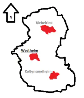 ![]() Lage von Westheim (fett) im Biebelrieder Gemeindegebiet
