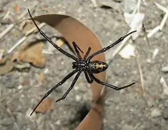 - ↑ a b Black Widow Spiders ( vom 21. Juli 2010 im Internet Archive) Unterscheidungsmerkmale der drei Arten (englisch)