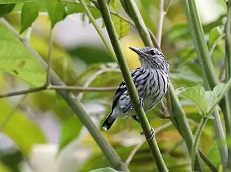 - ↑ Westlicher Strichelameisenschlüpfer bei Avibase; abgerufen am 25. Juli 2020.