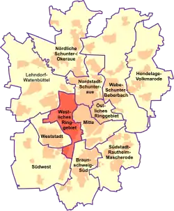 - ↑ Karte der statistischen Bezirke. (PDF; 622 kB) Stadt Braunschweig, 2010, abgerufen am 3. Dezember 2021.