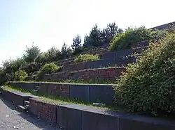 - Die Hochebene des Westparks auf 90 m ü. NN, künstlich geschaffenes Niveau, auf dem früher die Hochöfen und das Stahlwerk standen.