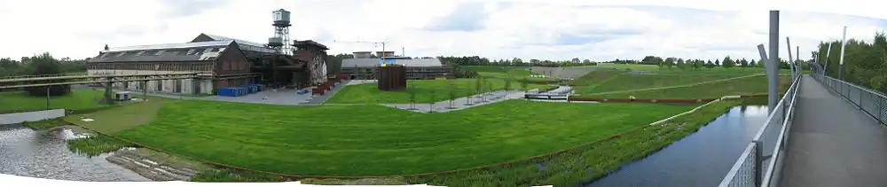 Das Grundgerüst der Parkgestaltung bilden die Hinterlassenschaften der industriellen Nutzung des Standortes, die auf die Ansiedlung der Mayerschen Gußstahlfabrik an der Alleestraße im Jahre 1843/45 zurückgeht.[3] Hier wurden 160 Jahre lang Stahlprodukte von der Kirchenglocke über die Kanonenproduktion bis zum ICE-Radreifen hergestellt. 1968 wurden die Hochöfen stillgelegt und 1985 das Stahlwerk. Nur im östlichen Teil des Gesamtareals wird noch mit Stahl gearbeitet (siehe Bochumer Verein).