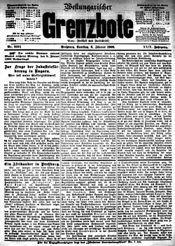 - ↑ Das liberale Journal Westungarischer Grenzbote. In: Westungarischer Grenzbote. 1. Mai 1872, abgerufen am 7. Dezember 2021.