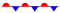 | stationäre Fronten werden mit Linie aus abwechselnd blauen Dreiecken und roten Halbkreisen eingezeichnet. | |